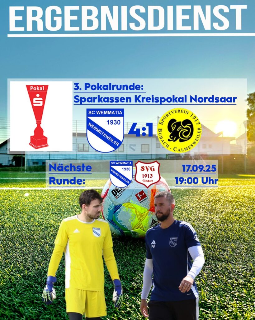 ⚽ Ergebnisdienst – 3. Pokalrunde Sparkassen-Kreispokal Nordsaar ⚽