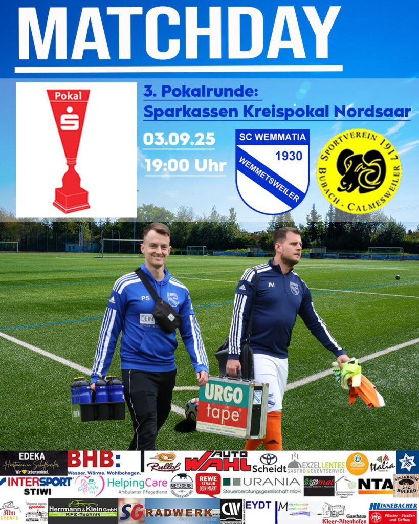 Unsere Wemmatia empfängt am Mittwochabend den SV Bubach-Calmesweiler zuhause im „Sportpark Lange Gewann“ in Wemmetsweiler. Anstoß ist wie gewohnt für ein Pokalspiel um 19:00 Uhr.